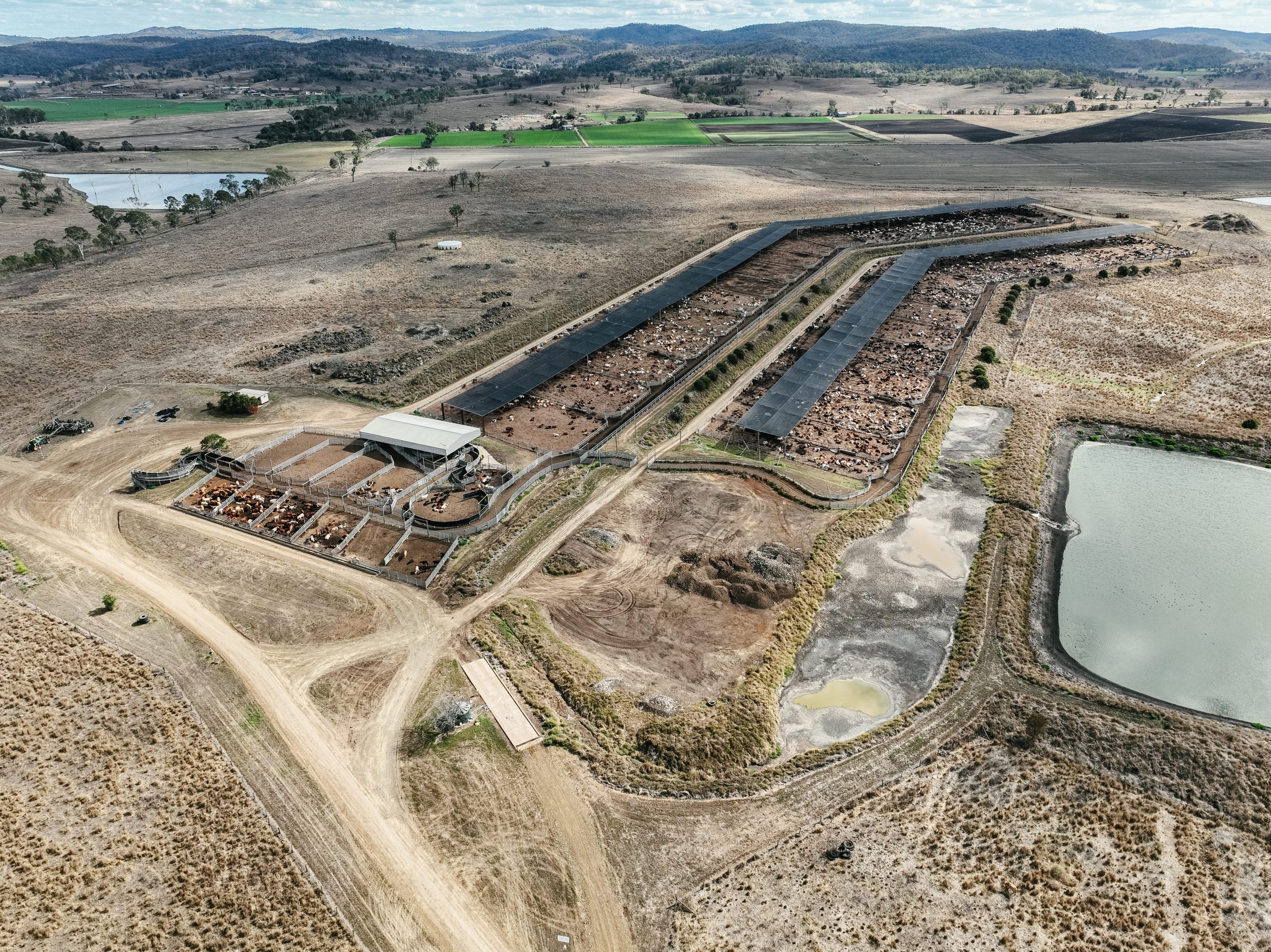 Nangur Downs Feedlot is located on Wakka Wakka country near Goomeri in the Gympie region of Queensland. Nangur Downs is an additional site to the nearby Waterfall Feedlot, and is owned and operated by the same people. This feedlot is only 450 metres from Nangur Creek, which runs from the north, east, and west of the feedlot, and the majority of the property, including the effluent holding ponds, is mapped as a flood hazard area.