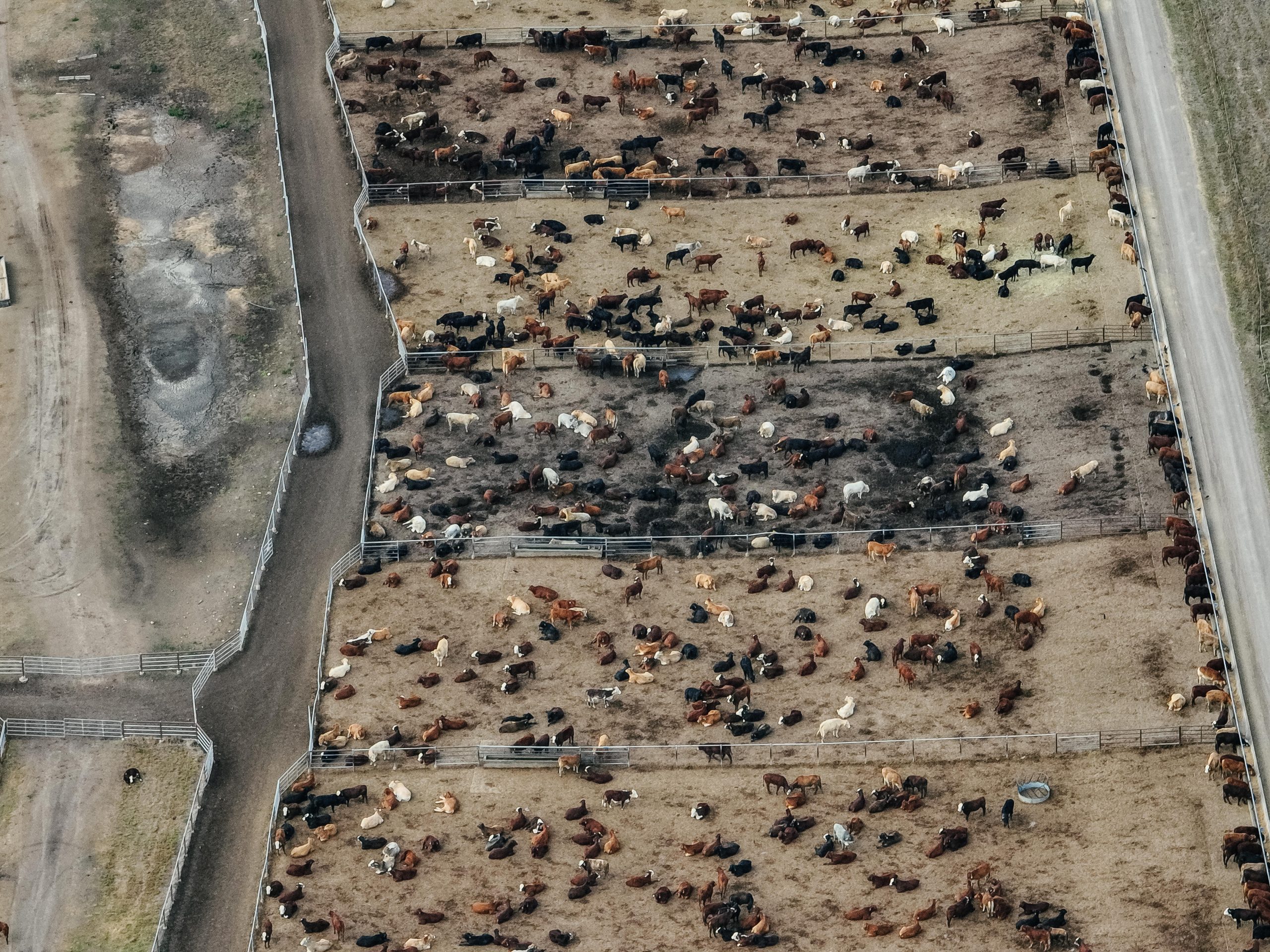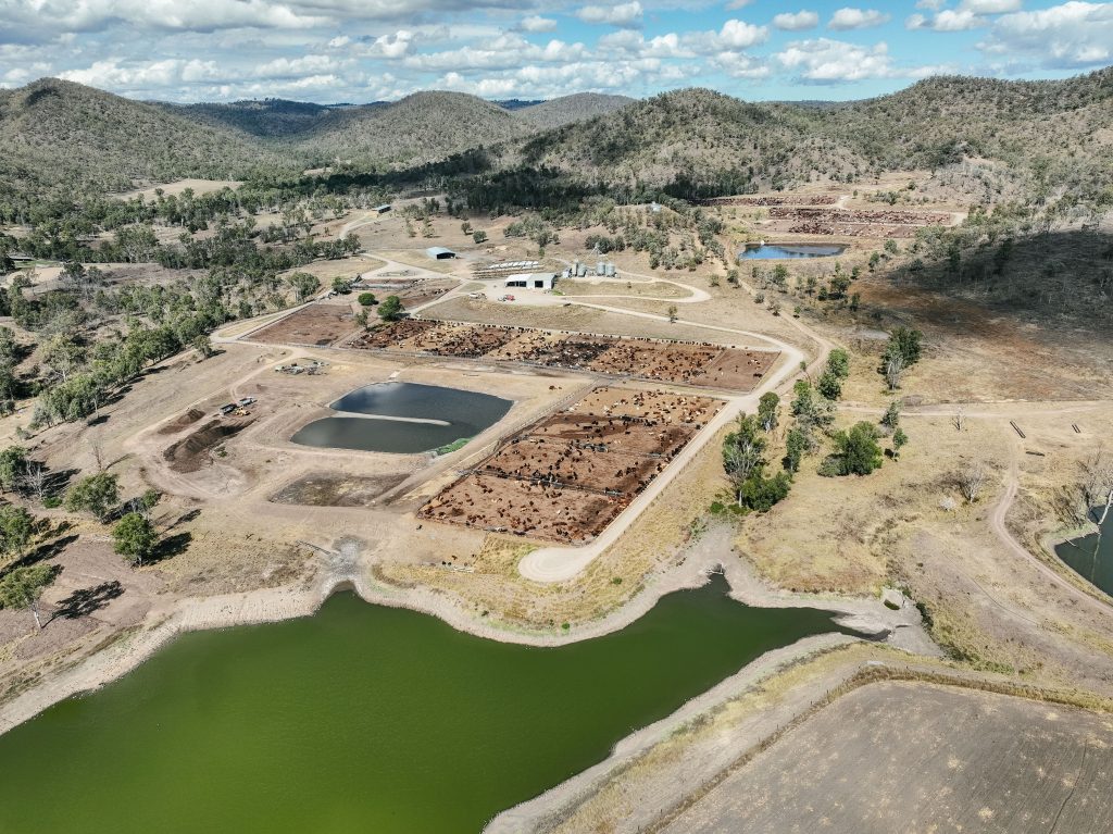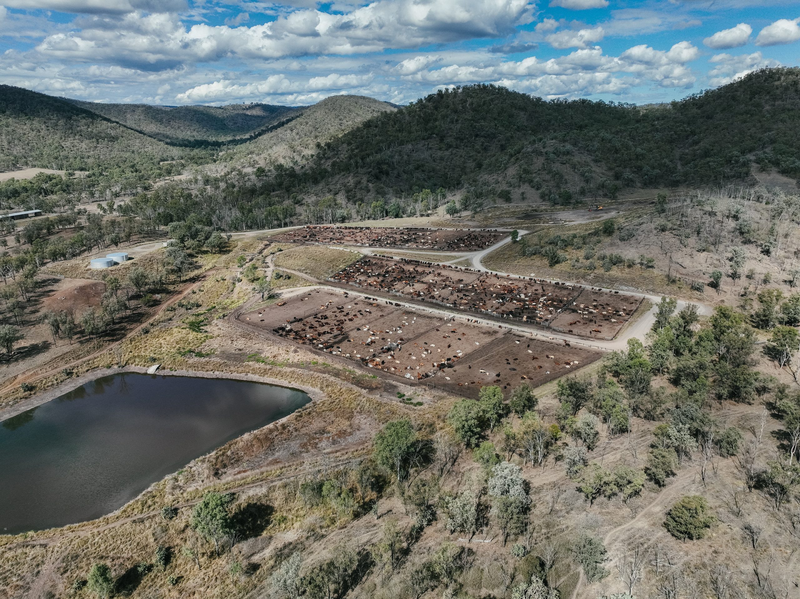 Saxby Feedlot is located on Gubbi Gubbi country, near Goomeri in the Gympie region of Queensland. This feedlot is located only 60 metres from Kabunga Creek, and a large part of the feedlot, including the effluent pond, is mapped as a flood hazard area. This feedlot does not provide any shade or shelter for the cows. On the day we visited, we observed cow body parts on the compost pile that were being eaten by wildlife.