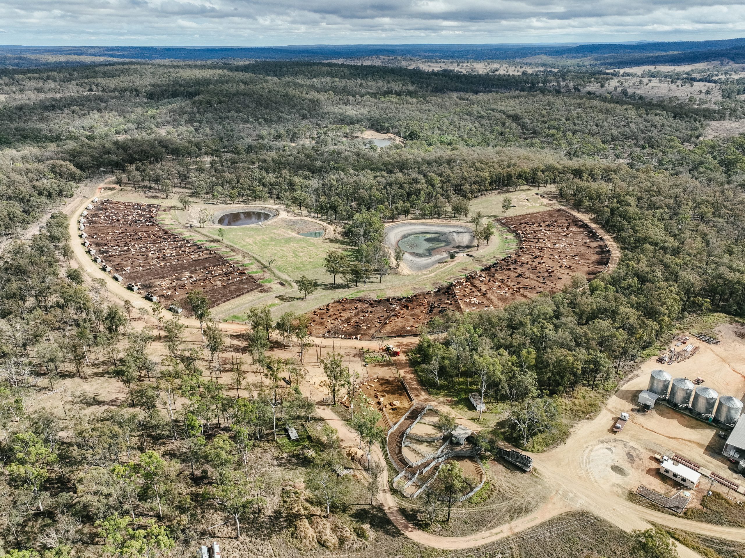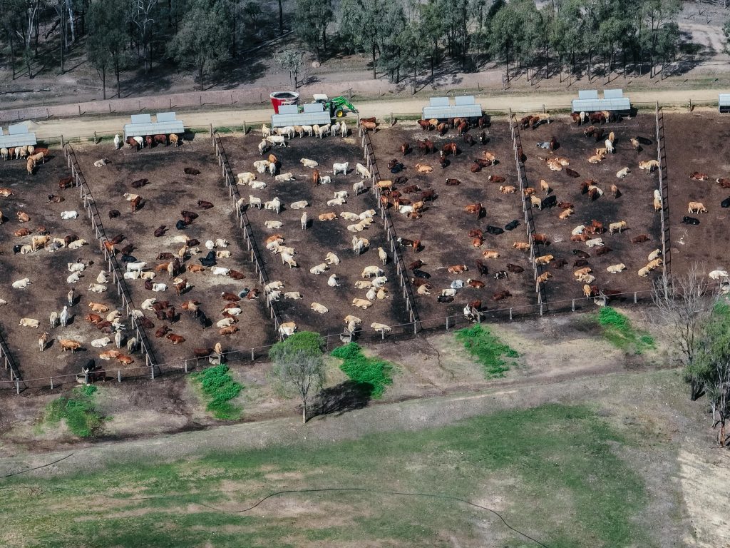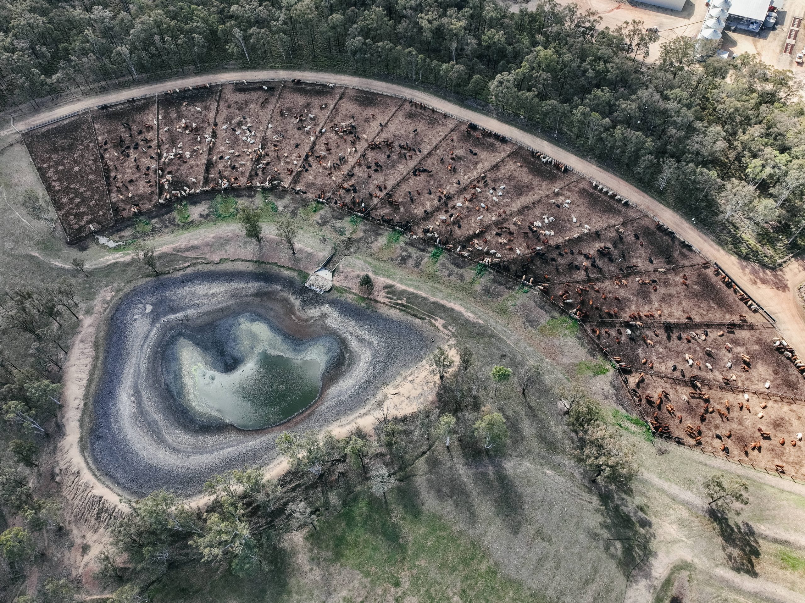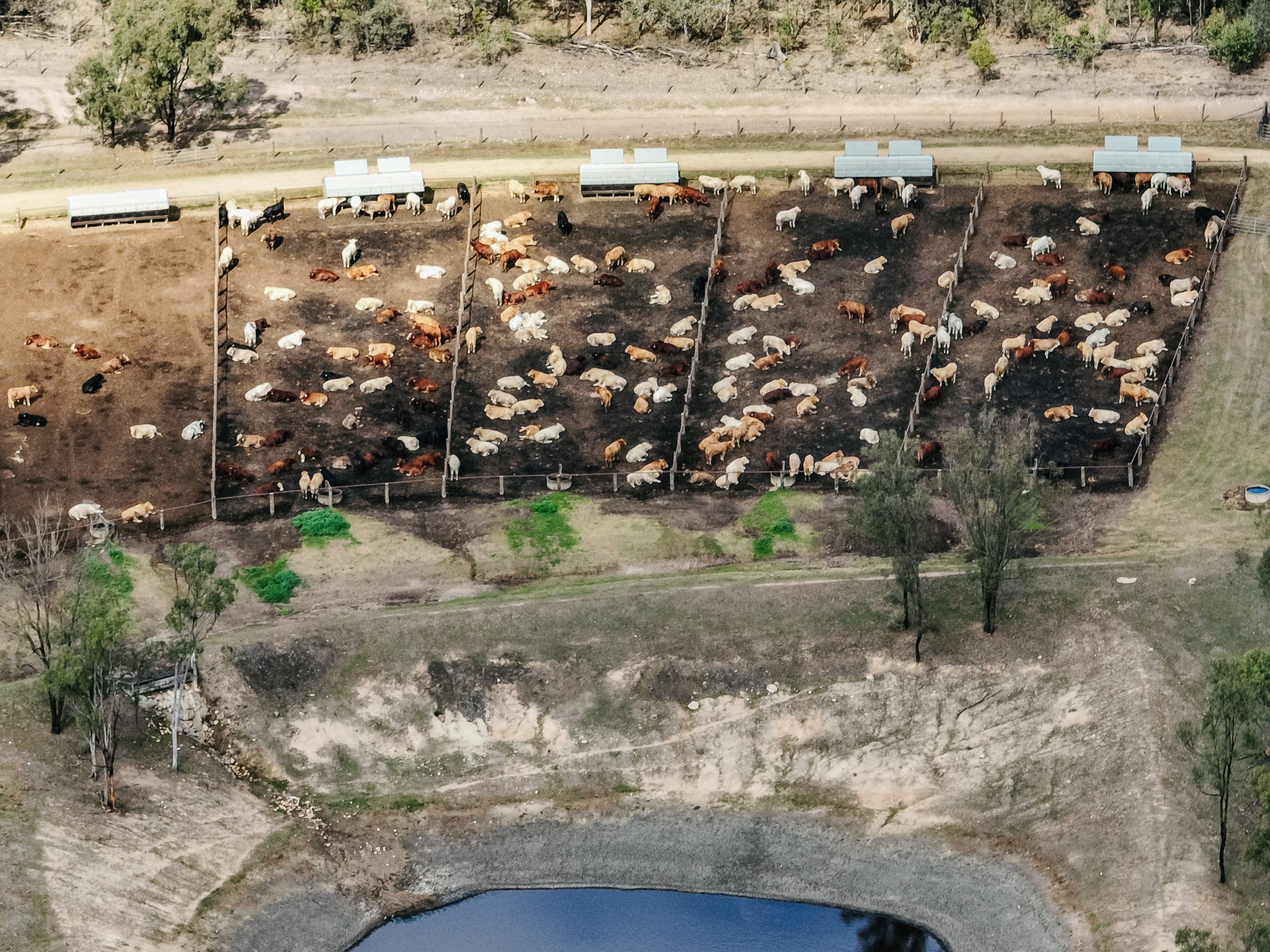 Stanhope Feedlot is located on Wakka Wakka country in the South Burnett region of Queensland. This feedlot is surrounded by habitat for endangered or vulnerable wildlife and is only 330 metres from Una Creek. The cows at this feedlot are not provided with any shade or shelter.