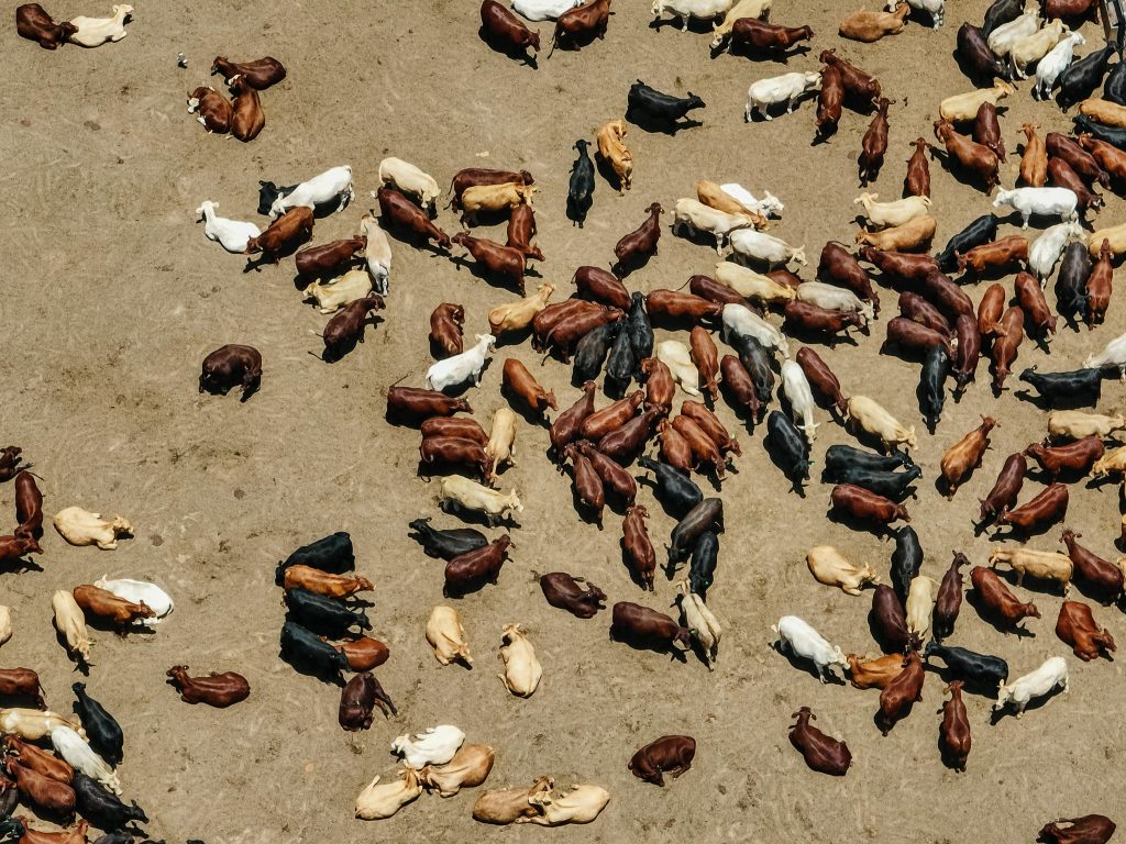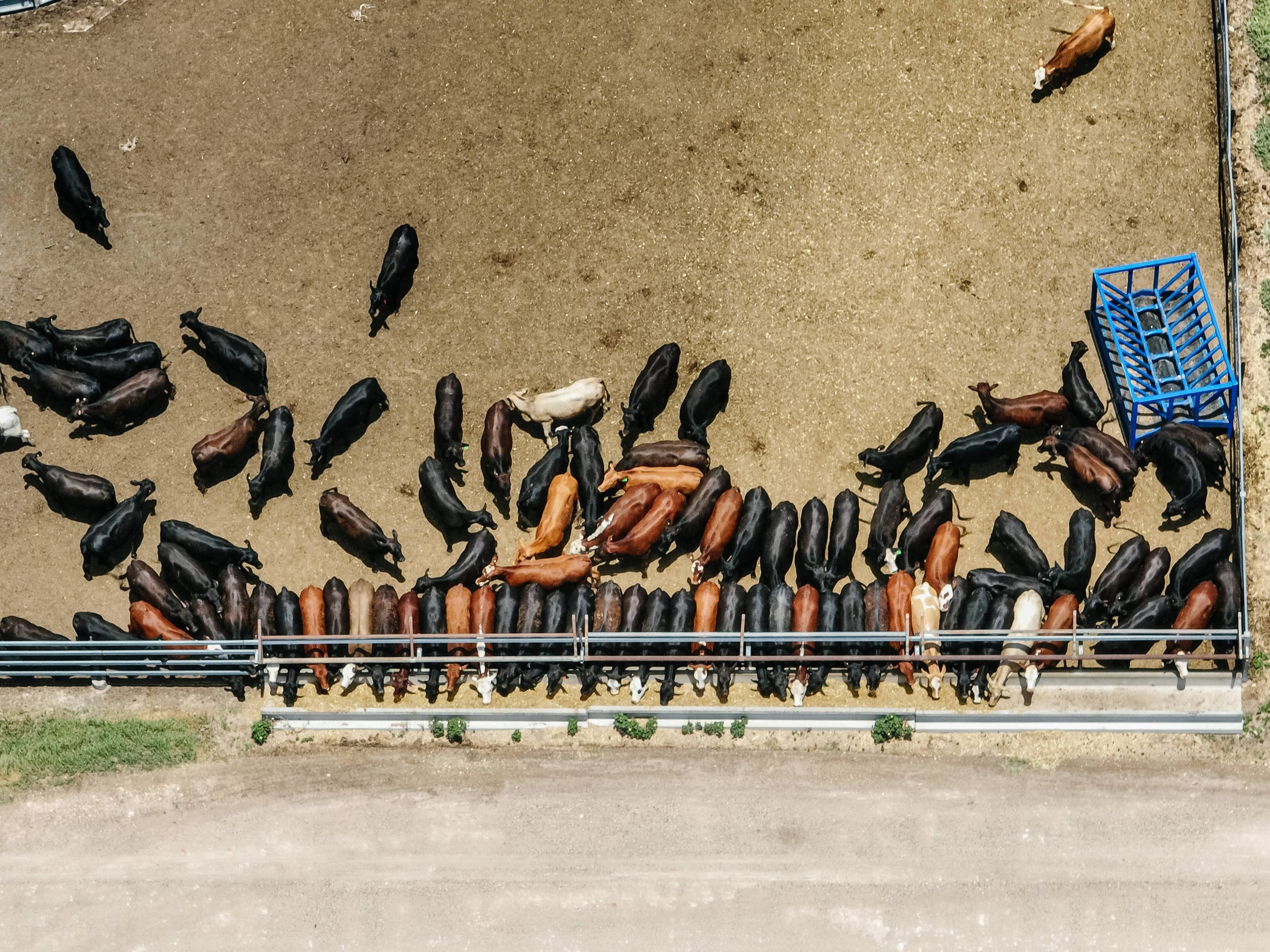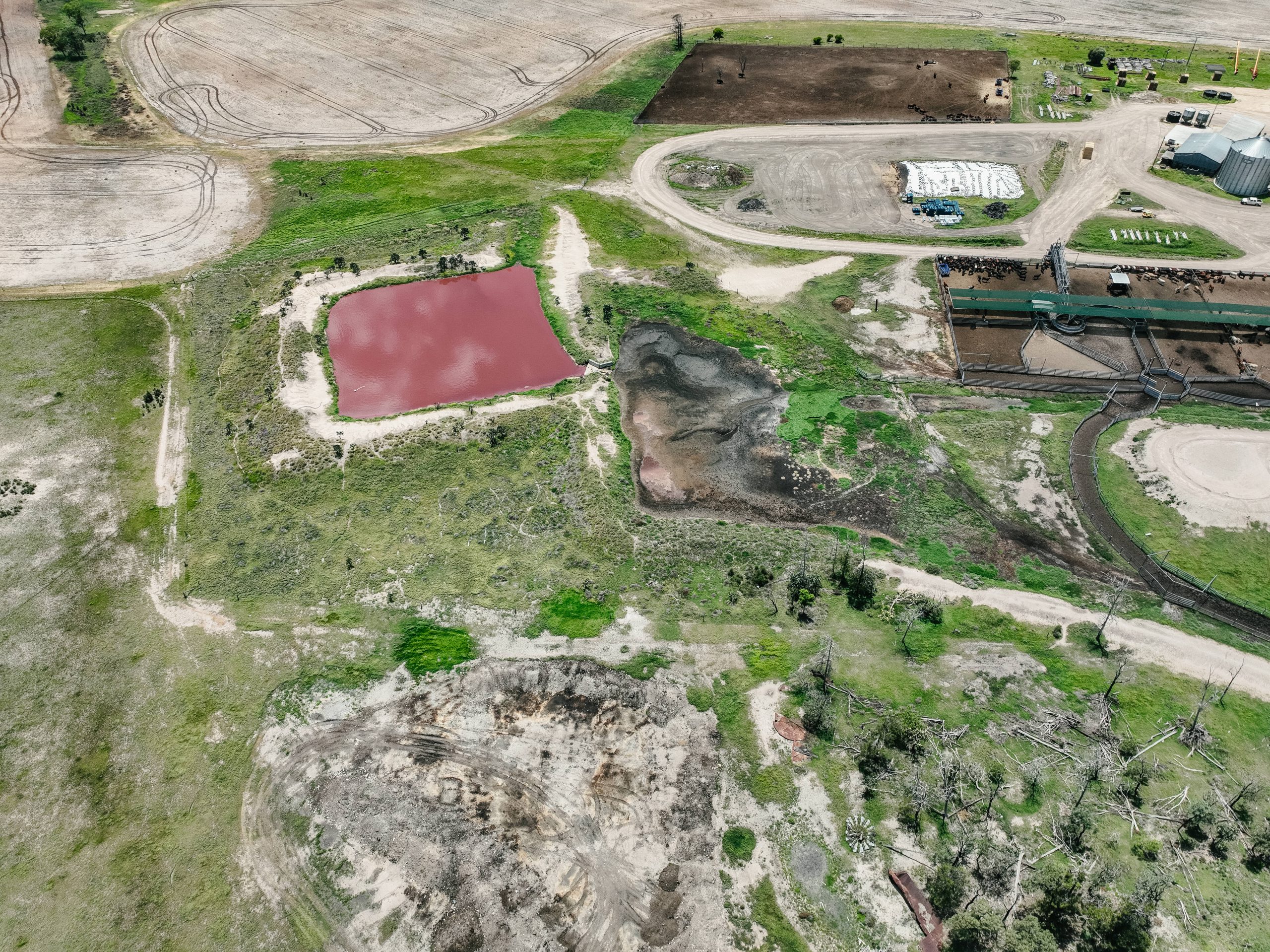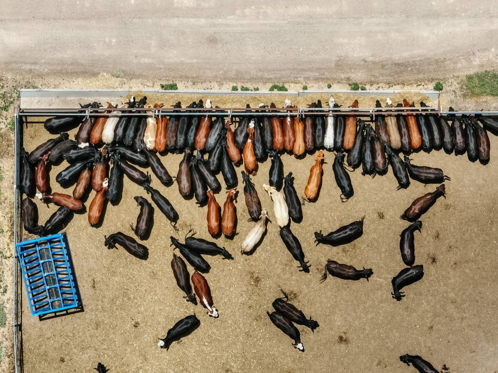 Talbingo Feedlot is located on Barunggam country, near Tara in the Western Downs on Queensland. This small feedlot has some shade structures, but they are not wide enough for all cows, and are not available in all pens. On the day that we visited the feedlot, we observed a lot of bones along with what appeared to be burnt earth on the compost piles. We also witnessed the cows pushing and shoving to get near the food troughs.
