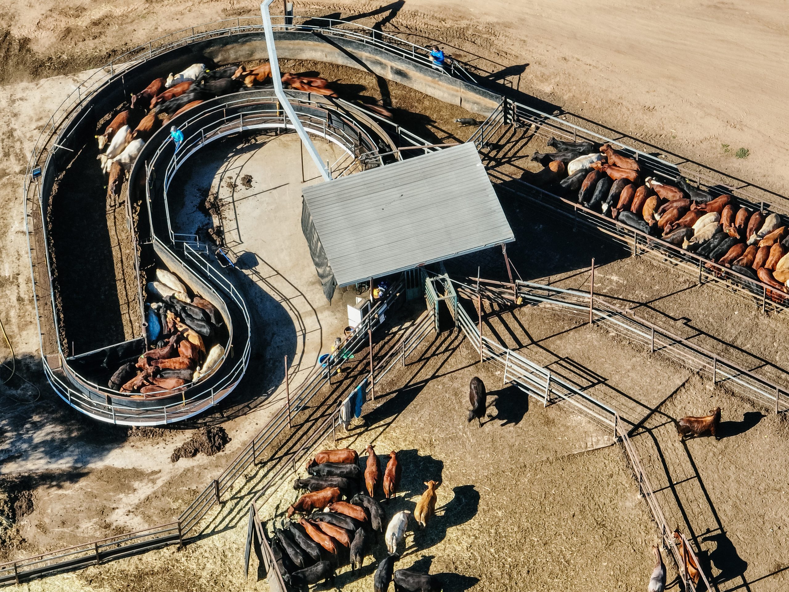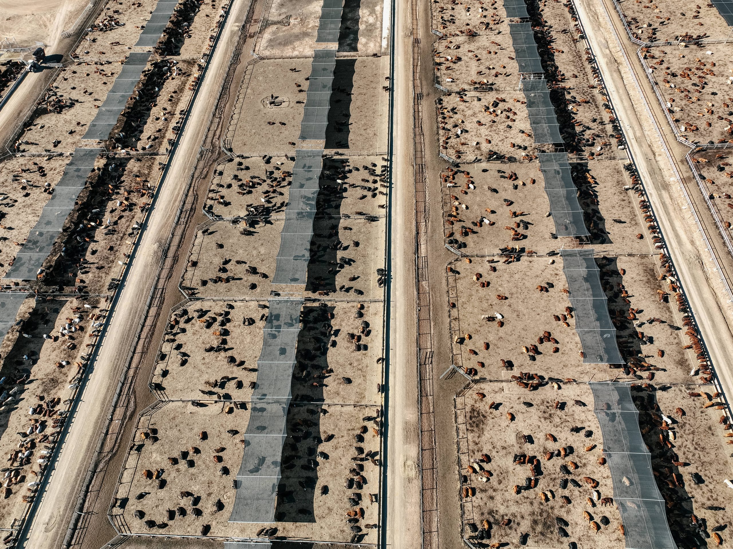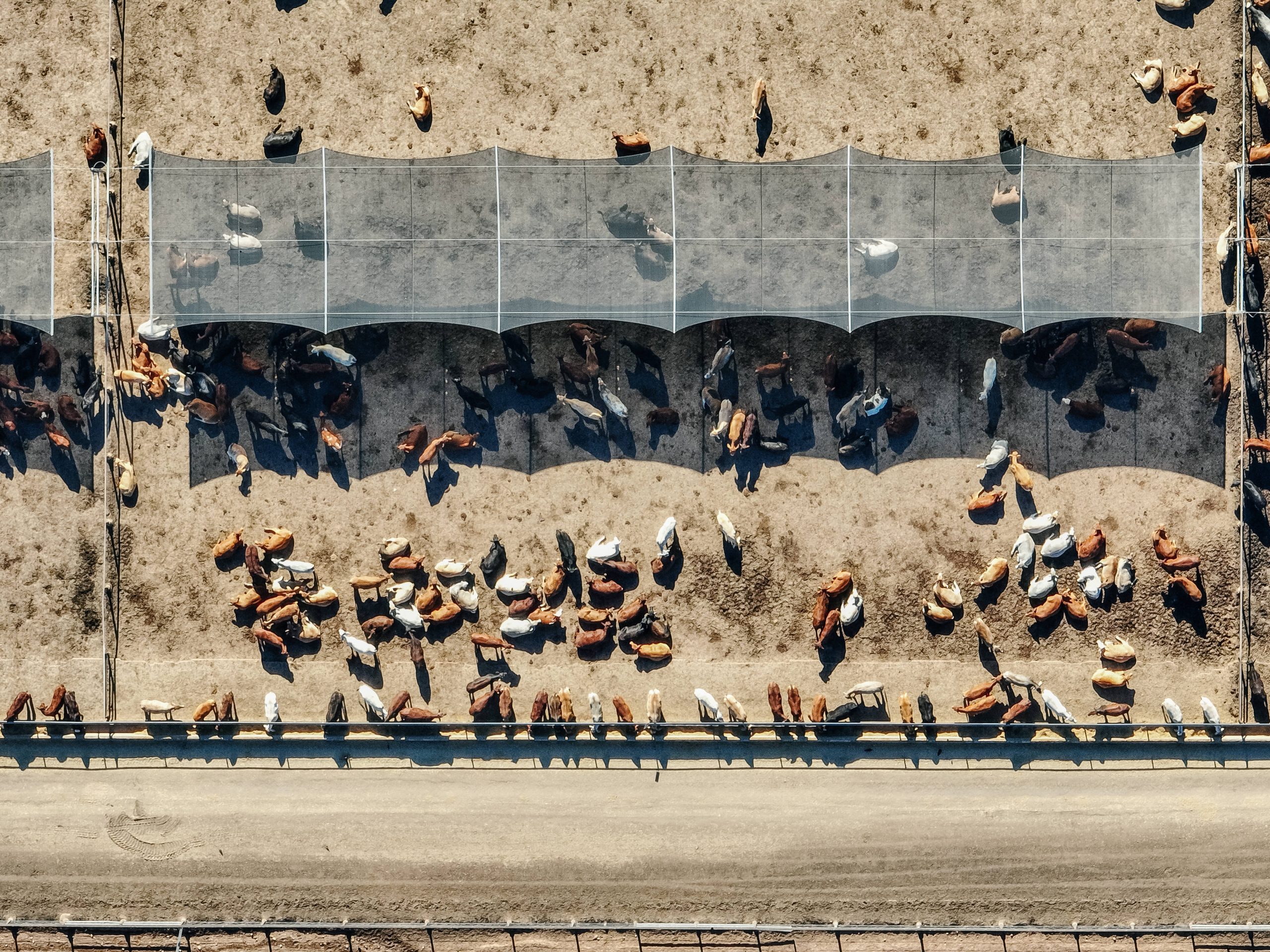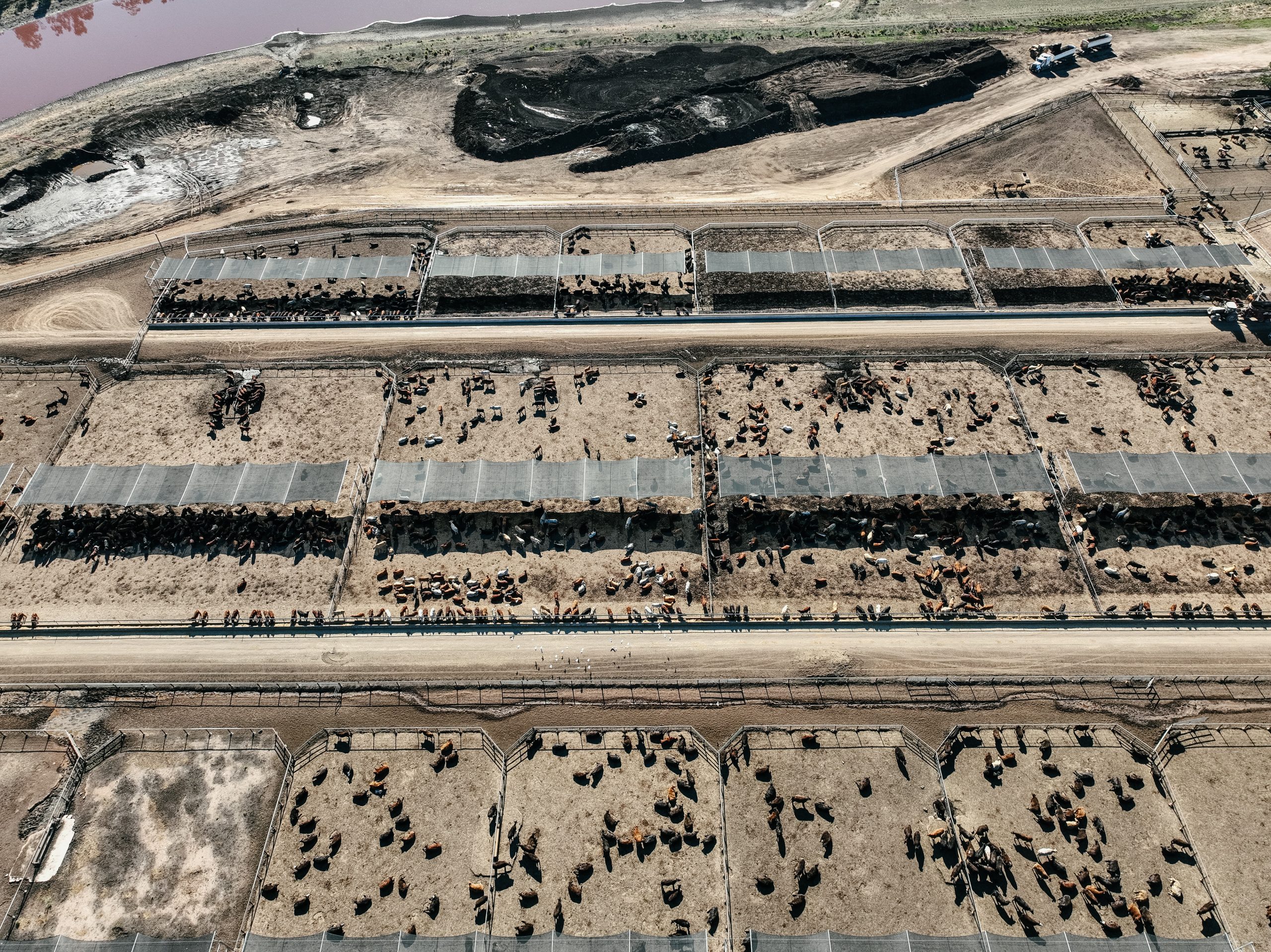 Vandyke Feedlot is located on Gayiri country near Springsure in the Central Highlands region of Queensland. This feedlot is owned and operated by Allied Beef. The feedlot is situated just 500 metres from Sandy Creek, and 1 km from Vandyke Creek, and the entire feedlot is mapped as a flood hazard area. On the day that the footage was taken, we witnessed domestic pigs eating the bodies of dead cows, effluent being drained out of the ponds, large piles of what appeared to be sludge and electric prods being used to move cows in the yards.
