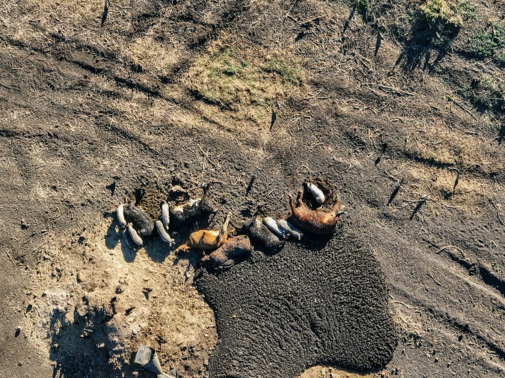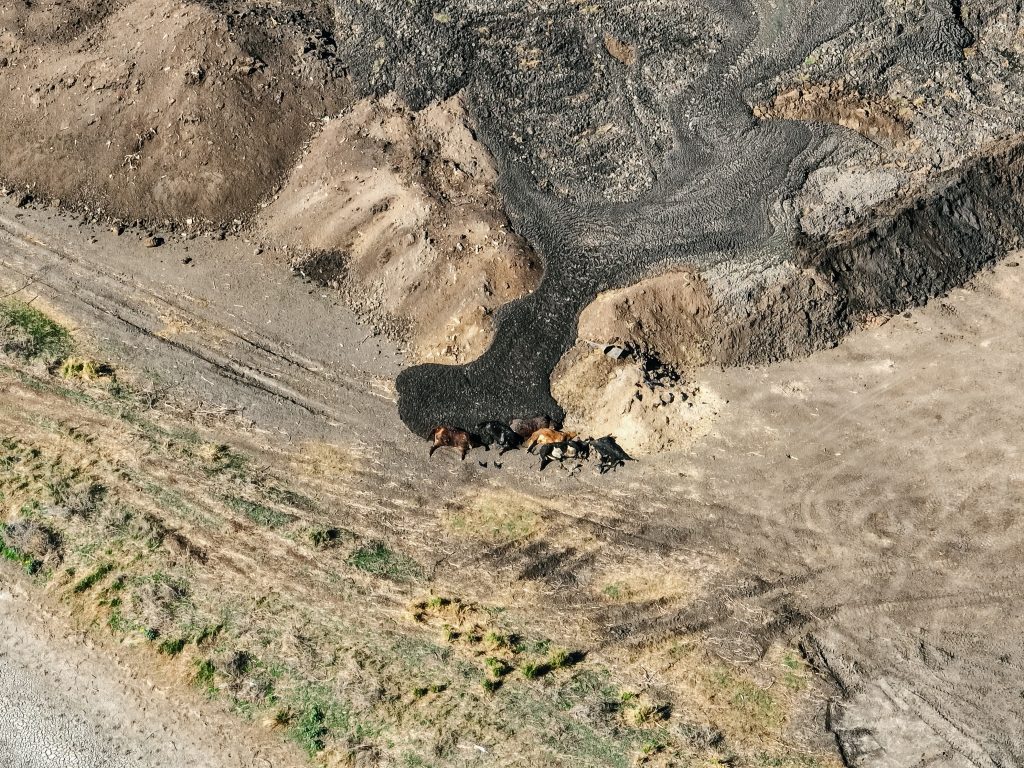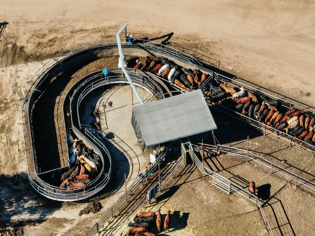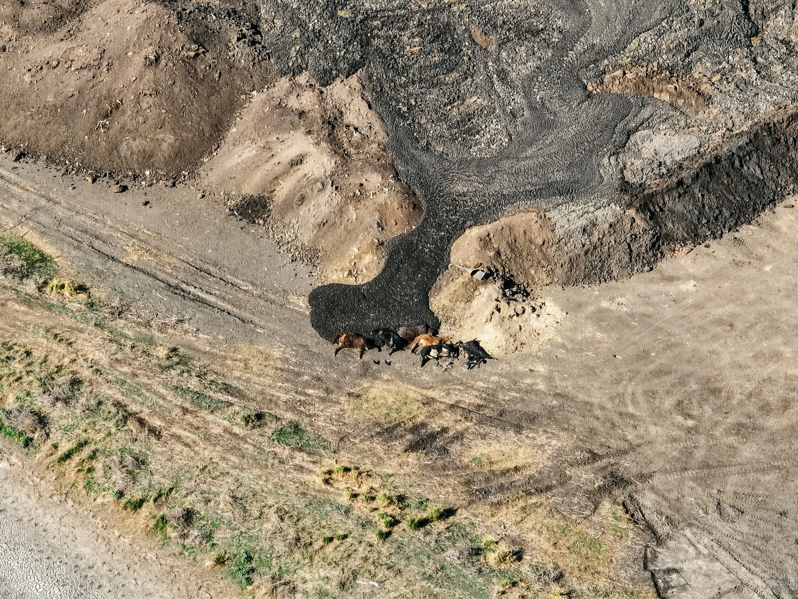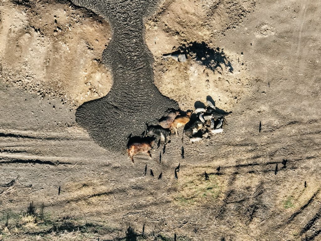 Vandyke Feedlot is located on Gayiri country near Springsure in the Central Highlands region of Queensland. This feedlot is owned and operated by Allied Beef. The feedlot is situated just 500 metres from Sandy Creek, and 1 km from Vandyke Creek, and the entire feedlot is mapped as a flood hazard area. On the day that the footage was taken, we witnessed domestic pigs eating the bodies of dead cows, effluent being drained out of the ponds, large piles of what appeared to be sludge and electric prods being used to move cows in the yards.
